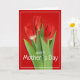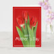 Tänk dig att detta vackra morsdags-kort öppnas av din speciella mamma, visad med vackra röda tulpaner.