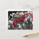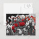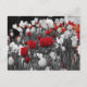slumpmässiga röda tulpaner mot svart och vitt vykort