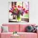Röda tulpaner och lilacs i fönster canvastryck