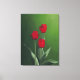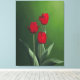 Kanvastryck av röda tulpaner mot bakgrund av rikens grönt. Jag gjorde originalmålningen i akryliker.