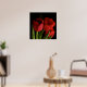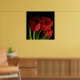 Den här fantastiska poster har en bukett med röda scarlet-tulpaner och grönt-löv som är inställda på en rent svart bakgrund.