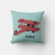 Bandkudde för rödvintage - med röd vintage på anpassadets blå bakgrund på ena sidan och blått biplan på andra sidan som också kan anpassas