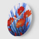 En akrylmålning av röda vallmo, i fält av abstraktens blå gräs.