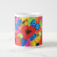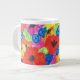 En söt Jumbo-Sized Coffee Mugg, med en vibrerande färgad mönster av scarlet poppies och ljusblå kornblommor, från en handmålad design av Judy Adamson.