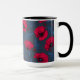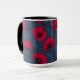 Röda vallmo och ladybuggar på mörk blått mugg