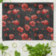 Röda vallmo på svart kökshandduk