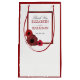 Dessa presentpåsar med röda vallmoblommor och linnedott är perfekta för alla par som planerar en blomsterinspirerad bröllopsfest.
