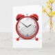 Den här konstruktionen är av en gammal röd väckarklocka i stil. Perfekt att vakna upp till. Klockan är stil med klockan ansikte och klockor överst. Den här rödalarmklocksdesignen ser underbar ut på de här hälsningskorten