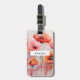 En bagagetagg med en vacker vattenfärgsbild. En fält av röda blommor med vackra vattenfärgsdroppar och fläckar.