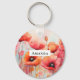 En nyckelkedja med en vacker vattenfärgsbild. En fält av röda blommor med vackra vattenfärgsdroppar och fläckar.