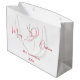 Vit bakgrund och röd abstrakt en linjesren. Anpassa och lägg till ditt namn. Text; God jul Perfekt både för presentemballering och som julpars favoritpåse, godiebag.