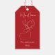 Röd bakgrund och vit abstrakt, en linjesren. Anpassa och lägg till namn och år. Text: God jul Bakåt: ingen design, plats för skriva för hand.