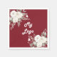Anpassa och lägga till din logotyp, företag. Röd bakgrund färg. Dekorerad med vit vattenfärgad ro, blommigtar. För företagsevenemang, party, marknadsföring, befordran.