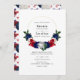 Röd, vit och blå blombouquet 4:e july bröllopsinbjudan anpassade till dina evenemangsspecifikationer.