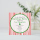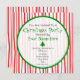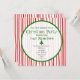 En julfest med en bakgrund med rött rand över vitt på framsidan och baksidan. Framsidan har en ren cirkel som beskrivs i grönt. Anpassa grått- och grönt-texten med information om tillfälle. Grönt Julgran i centrum.