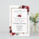 Designen har element som rosor i milda röda nyanser, åtföljda av eukalyptus botanisk grönska. Kombinerat med en blekgul ram skapar det en mer elegant och artig layout. Typografin visar en modern layout med svart text.
