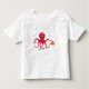 Barnens design, baby-gåva, småbarn-utskrift, baby t-shirts, karosseri med baby. Bilden visar en bläckfisk och en fisk, undervattensvärlden. Undervatten i havet. Röd bläckfisk, grönt tentakler.