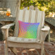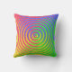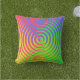Denna färgstarka utomhuskudde har en abstrakt spiral-regnbåge mönster som snurrar runt ett centralt mål i färg av grönt, blått, gult, orange och rött.