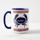 Rödblåvitkrabba för marinfiske i monogrammet mugg