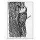 Yuichi Tanabe illustrerar med svart och vitt "Red-bellied Woodpecker" på träd