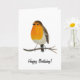 Detta födelsedagskort har en originell akvarellmålning av en pigg rödbröst som sitter på en gren. Grattis-texten på framsidan och insidan av kortet kan enkelt anpassas, vilket gör detta till ett perfekt kort för alla.
