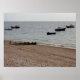 Flera fiskebåtar är utspridda över det lugna havet nära en småstensstrand under en mulen himmel. En träbrygga sticker ut i vattnet och markerar gränsen för strandområdet. Förankrade utanför kusten är de olika båtarna arrangerade i rader av strömmen och vågorna. Inte riktiga roddbåtar men rader av båtar gjorda symmetriska av naturen.