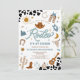 Sätt i sadeln för en rolig fest med denna inbjudan till en westernrodeo-inspirerad 2-års födelsedagsfest! Med cowboyhattar, stövlar, hästskor, kaktusar, gitarrer och en sheriffmärke mot en djärv ko-print bakgrund, fångar denna design perfekt andan av det Vilda Västern. De lekfulla teckensnitten och rustika illustrationerna gör den idealisk för små cowboys och cowgirls. Anpassa enkelt med dina festdetaljer och skapa en minnesvärd souvenir för gästerna. Perfekt för rodeo-, western- eller landsbygdsinspirerade födelsedagsfester.