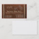Skapa ett starkt västerländskt intryck med detta läderliknande visitkort med en rustik rodeo och cowboy-inspirerad design. Det rika strukturerade utseendet härmar präglat läder för en autentisk västerländsk känsla, samtidigt som det förblir en tryckt grafisk design - inte äkta läder.
