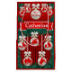 Rodeomornament på ett rött bakomliggande som är tryckt på en helgdag presentväska. På framsidan finns 2 fält. Inuti den vita prydnaden längst upp har jag inkluderat "God jul", men det kan ändras till Glad helg, Season Greetings eller andra hälsning. Det finns också ett band nära mitten för att anpassa väskan med namn. Baksidan har en upprepning mönster av rodeoornament. Se mer westerna helgdag i Rodeo Days Store.