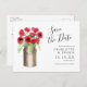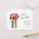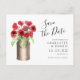 Spara vykortet för datum med en röd vattenfärgspopiebukett i en mjölk-bucket.