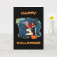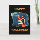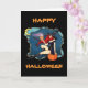 Rödhårig häxa II, en kall illustration som presenterar ett härligt rödhårigt häxainnehav sitta för stunder för en förtrollad jacknolla' latern på en pumpa och en utsmyckad ram med en växande måne. Huvudsakliga färger: slösa rött, orange, svart, lilor och gult. Den original- teckningen gjordes med färgpennor och acrilycs av konstnär© E.D. Siffert.