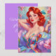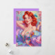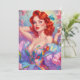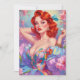 Rödhårig Pin-Up med Påskägg Rosa Blommor Julkort