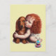 Rödhårig småbarn som kramar Dachshund vykort