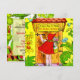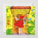 En vintageklassiker med Rödluvan på framsidan, bärande på sin korg med godsaker medan hon knackar på mormors stuga och är omgiven av blommor. På baksidan visas hur hon anländer till mormors stuga och välkomnas av alla skogens djur, inklusive en söt ekorre och en blå fågel. Perfekt för alla födelsedagsfiranden!