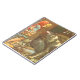 Gammal illustration klassisk barn saga bok bild med en ung flicka som möter ett farligt djur i skogen. Rödluvan bär en picknickskosa med godsaker och möter den stora onda vargen på väg för att besöka sin mormor.