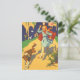 Vintageillustration Gammal illustration barn och spädbarn bild av en födelsedagsfest med ett barn i en röd kappa som springer med en massa ballonger och hennes hund springer med henne.