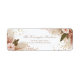 Lägg till en touch av fantasifull elegans till din post med denna fantastiska botaniska komposition. Designen presenterar ett frodigt arrangemang av mjuka rosa dahliablommor, jordnära terrakotta-torkade palmfläktar och djupa mahognybladsklasar. Gnistrande guldglitterstjärnstoft och ömtåliga rosa blomknoppskvistar är utspridda över den krispiga vita bakgrunden och skapar en känsla av lysande rörelse och exklusiv charm. Denna returadressetikett är den perfekta avslutande detaljen för bröllopsbrevpapper, säsongsbetonade högtidskort eller förfinad personlig korrespondens. Dessa motiv säkerställer att dina kuvert sticker ut med en polerad, sammanhängande look som fångar en modern bohemisk essens