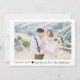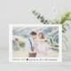 Dessa enkla och elegant bröllop tackar dig cards särdrag ditt favorit- personliga bröllopfoto med en geometrisk ram för tunn vit, tillsammans med dina namn i modern svart skriva typografi och en mycket liten hjärta. Baksidaen av kortet har en mjuka rodna rosor texturerad look.