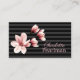 Den härliga visitkorten som göras i en svart på svart horisontalrandmönster, med älskvärda diagram av en rodna rosa gren av magnoliaen, blommar. Personifiera alla textfält för dina affärsbehov.