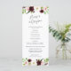 Vår chic blom- bröllopsprogram presenterar din ceremoni specificerar i elegant av-svarten bokstäver som upptill inramas, och nedersta vid vattenfärg blommar i rodna rosa-, elfenben- och burgundy marsala. Den omvända sidan listar medlemmarna av din bröllopsfest med lätt redigerbara textfält. Koordinater med vårt rodnar den romanska bröllopinbjudansamlingen. Använd mallfälten för att tillfoga din ceremoni och information om brudens sida och klicka därefter "skräddarsy den" för att placera om inslag, om behövt.