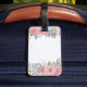 Monogrammed bagagemärkre med en shabby chicdesign som presenterar rodna rosa- och blåttblommaordningar mot en mörk - blått- och vitpolkaen pricker mönster. Tillfoga ditt initialt och ditt namn.