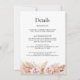 Elegant Boho-temat bröllopsdetaljkort med en rodnad färgad och naturliga toner blomsterarrangemang med pampasgräs. Färgen på baksidan av kortet kan ändras. Denna design är idealisk för ett modernt blomsterboho-temat bröllop.