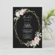 Denna rosafärgade blomstermönstrade enkla svarta bröllopsinbjudan har en vacker och chic neutral bakgrund i svart eller vitt med modern typografi och elegant kalligrafi för att skapa en sofistikerad ton för alla typer av evenemang. Varje produkt är dekorerad med vackra rosafärgade rosor och persika- och elfenbensfärgade hortensior arrangerade med frodig eukalyptus och gröna blad, tillsammans med tidlösa geometriska guldramar för en lyxig look. Blanda och matcha denna koordinerade kollektion för en enkel och personlig drömbrollopsestetik för en mängd olika informella till formella stilar. För fler koordinerade mönster finns denna design även tillgänglig i pastellrosa och marinblå. Som med alla våra designer, om du har några frågor eller