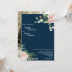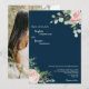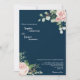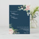 Denna rosafärgade blomstermönstrade, marinblå fotos bröllopsinbjudningsdesign har vackra, chic, klassiska bakgrunder i pastellrosa och marinblått med enkel, modern typografi och elegant kalligrafi för att skapa en sofistikerad ton för alla typer av evenemang. Varje produkt är dekorerad med vackra rosafärgade rosor och persika- och elfenbensfärgade hortensior arrangerade med frodig eukalyptus och detaljer i gröna blad, tillsammans med tidlösa, geometriska, gyllene ramar för en lyxig look. Blanda och matcha denna koordinerade kollektion för en enkel, personlig drömbrollopsestetik för en mängd olika stilar, från avslappnad till formell. För fler koordinerade designs finns denna design även i vitt och svart. Som
