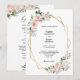 Denna rosafärgade blomstervita enkla allt-i-ett bröllopsinbjudan design har vackra, chic neutrala bakgrunder i svart eller vitt med modern typografi och elegant kalligrafi för att skapa en sofistikerad ton för alla typer av evenemang. Varje produkt är dekorerad med vackra rosafärgade rosor och persika- och elfenbensfärgade hortensior arrangerade med frodig eukalyptus och gröna blad detaljer, tillsammans med tidlösa geometriska guldramar för en lyxig look. Blanda och matcha denna koordinerade kollektion för en enkel och personlig drömbrollopsestetik för en mängd olika informella till formella stilar. För fler koordinerade designs finns denna design också i pastellrosa och marinblått. Som med alla våra designs, om du har några frågor eller