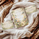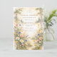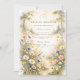En mjuk akvarellängsdesign med ömtåliga tusenskönor, rosa kosmos, blå kornblommor och glada gula blommor samlade i ett fräscht vårarrangemang. Blommorna stiger naturligt från layoutens botten och skapar en luftig och öppen komposition med en varm pergamentbakgrund. Ljus, romantisk och elegant utan ansträngning, fångar denna design charm av en solbelyst lantgårdsträdgård. Perfekt för en brud som älskar naturinspirerade detaljer med en tidlös och graciös touch.