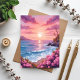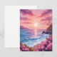 Rodnad Strandvik | Ocean Solnedgång Rosa Akvarell Målning Kort