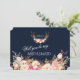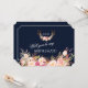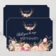 Lantlig Rosa Rodnad Blommig Hjorthorn Monogram kortdesign med vacker akvarell hjorthorn med rosa rodnad blommig bukett, pilar med hjärtan och en blommig bukett som avdelare; på baksidan blommig avdelare med initialer på en rik marinblå bakgrund. Du kan ändra typsnitt, färger. För matchande artiklar, besök min Blush Floral Antlers Kollektion. Använd verktyget Anpassa för att lägga till din information, ändra BRUDJUNGFRU MED BLOMSTER Flicka/ MATRON OF HONOR... för att passa ditt behov, ändra typsnittets färg.