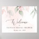 Lägg till en personlig touch till din bröllopsfest med dessa stilrena och minnesvärda festartiklar! Designen har rosa vattenfärgblommor och grönska på blekrosa bakgrund.