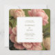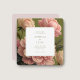 Modern och trendig med klassisk vintage-känsla. Denna vackra bröllopsinbjudan har en bukett av fylliga rosor mot en chic olivgrön bakgrund, medan baksidan har en kontrasterande rodnande rosa färg. Den samtida typsnittsstilen utstrålar en stilren modern elegans. Personifiera med bröllopswebbplats och RSVP-information på baksidan.